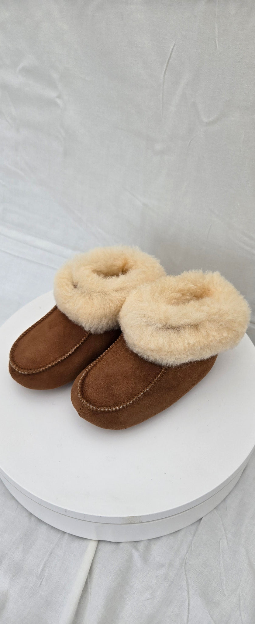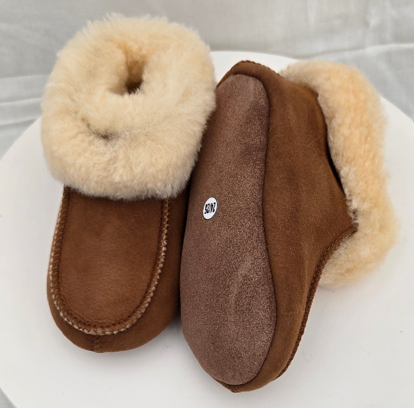 Viking fårskinnstoffel för barn (egen tillverkning TK Hantverk) med en mjuk soft sula som gör det mysigt att krypa upp i soffan. Finns i färgerna beige och grå och dubbelstorlekar 22-23 tom 34-35.